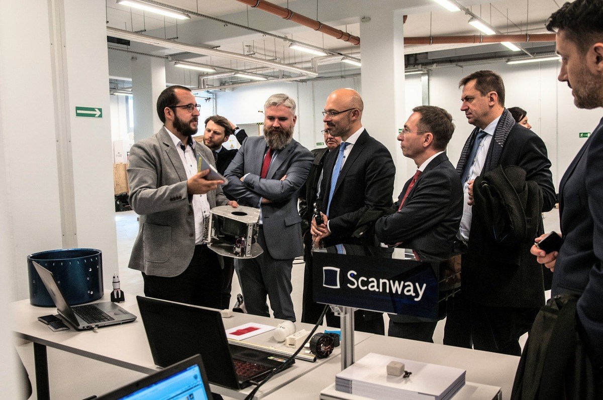 Pierwszą polską kosmiczną wiertarką mieli okazję zobaczyć m.in.: dr Michał Kurtyka, wiceminister energii i Maciej Bluj, wiceprezydent Wrocławia Scanway