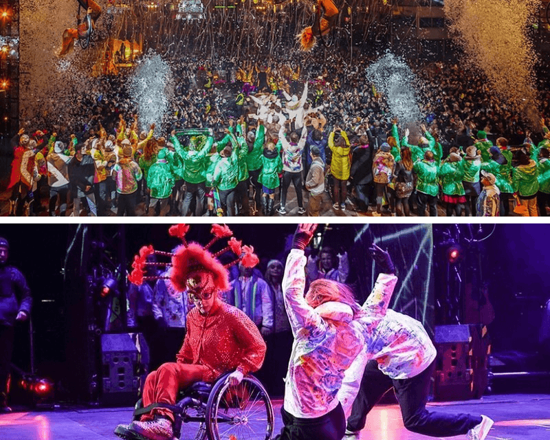 Osoby z niepełnosprawnościami nie tylko zaśpiewały, ale i zatańczyły w specjalnej choreografii Macieja „Gleby” Florka. Wśród wykonawców byli m.in. Klub Kibiców Niepełnosprawnych Śląska Wrocław, członkowie Integracyjnego Teatru Arka i pracownicy wyjątkowej klubokawiarni Cafe Równik, laureaci plebiscytu 30 Kreatywnych Wrocławia 2019.