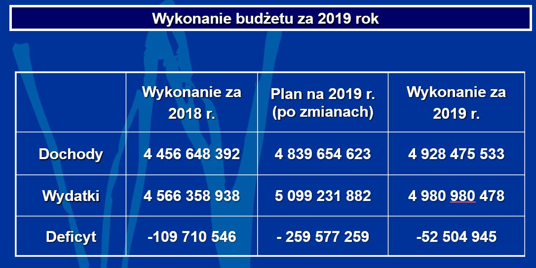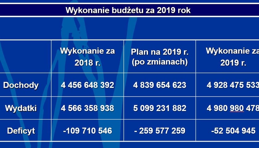 W zeszłym {2019 – red.] roku, zarówno dochody, jak i wydatki przekroczyły kwotę 4,9 mld zł. Miniony rok zamknął się deficytem budżetowym na poziomie 53 mln zł, czyli o ponad 200 mln zł mniejszym, niż planowano, oraz dwukrotnie niższym niż w roku 2018 – wyliczał prezydent Sutryk. – To jeden z najlepszych wyników w kraju. W kontekście rosnących wydatków, związanych z bieżącą działalnością miasta, jest bardzo dobrym wynikiem. Niestety w związku z ekonomicznymi skutkami epidemii musimy liczyć się ze znacznym pogorszeniem tego wskaźnika w tym [2020 - red.] roku – dodał.