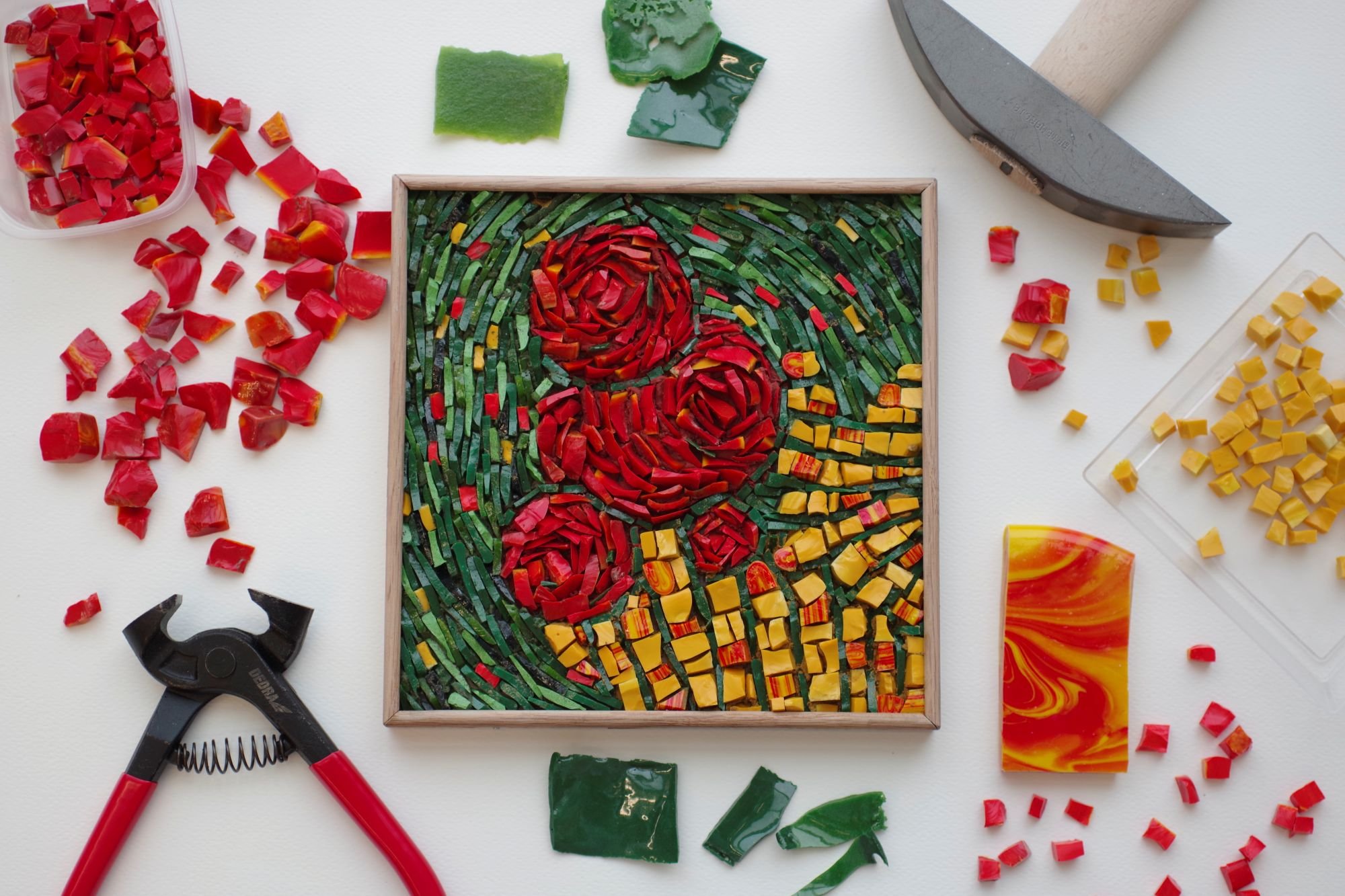 Warsztaty obejmują naukę techniki mozaikowej od podstaw. Zajęcia skierowane są do osób początkujących – nie jest wymagana żadna wcześniejsza wiedza ani doświadczenie.