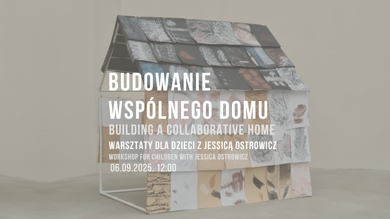 Podczas warsztatów „Budowanie wspólnego domu” dzieci w wieku od 6 do 10 lat będą wspólnie tworzyć symboliczny dom z rysunków wykonanych techniką frotażu. Inspiracją do działania jest proces budowania ptasich gniazd – tworzonych z materiałów zebranych w najbliższym otoczeniu. W podobny sposób uczestnicy i uczestnicy warsztatów będą zbierać „powierzchnie” i „ślady” domu, by połączyć je we wspólną, kreatywną całość. Podczas spotkania uczestnicy i uczestniczki stworzą wspólne dzieło, które będzie symbolicznym gestem pamięci o przeszłości oraz nadziei na odnowę. Dzieci wezmą udział w twórczym i namacalnym doświadczeniu, pozwalającym im przybliżyć temat „domu”. Dzieci mogą wziąć udział w warsztatach wraz z rodzicami bądź opiekunami.