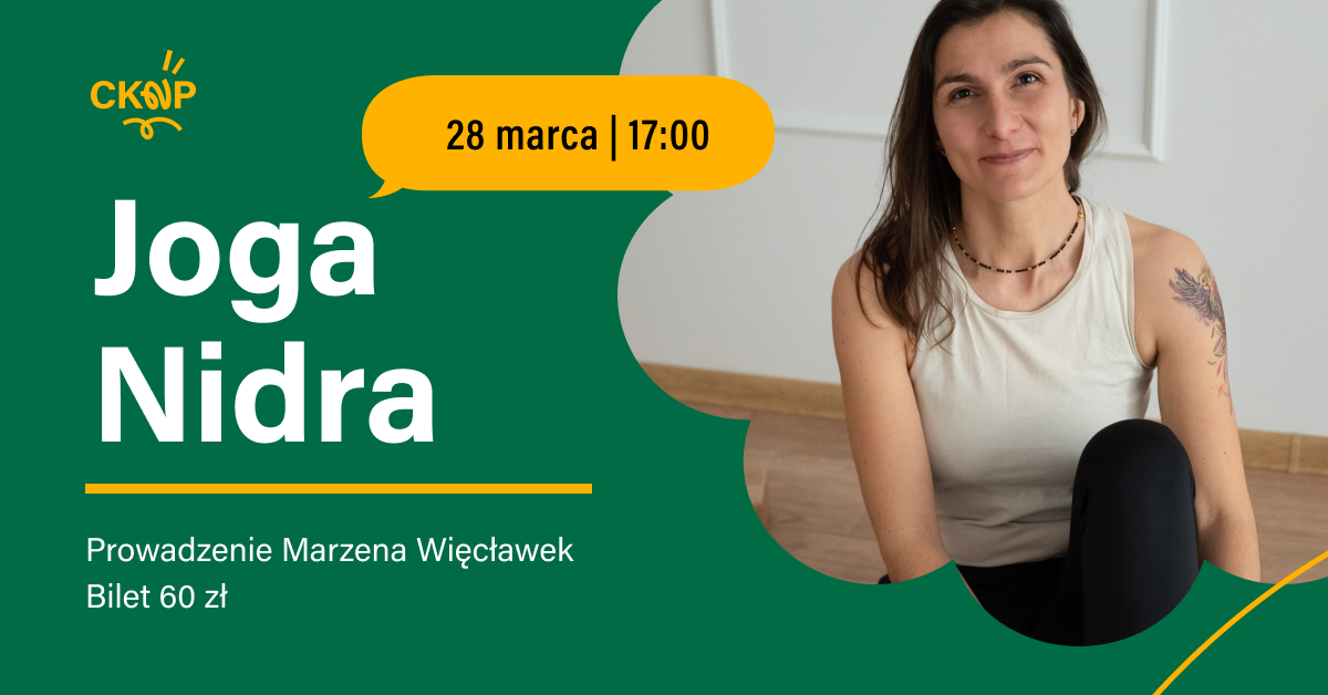 Prowadząca: Marzena Więcławek Instruktorka rekreacji ruchowej o specjalności Hatha Joga (AWF Katowice), absolwentka studiów podyplomowych „Psychosomatyczne praktyki jogi” na AWF Wrocław. Od lat prowadzi zajęcia z Hatha Jogi, Jogi Nidry, zdrowego kręgosłupa i onkojogi. W swojej pracy łączy wiedzę o ciele i umyśle, tworząc bezpieczną przestrzeń do relaksu i uważności.
