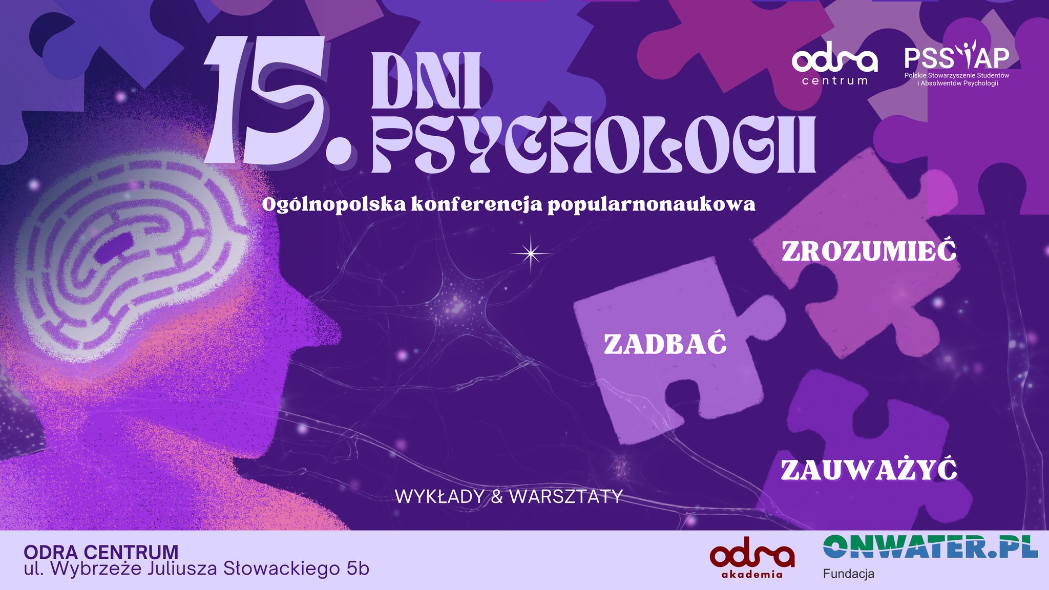 Serdecznie zapraszamy na „15 Dni Psychologii”, popularnonaukowe wydarzenie organizowane przez Polskie Stowarzyszenie Studentów i Absolwentów Psychologii we Wrocławiu. Celem konferencji jest popularyzacja wiedzy psychologicznej oraz promocja zdrowia psychicznego.