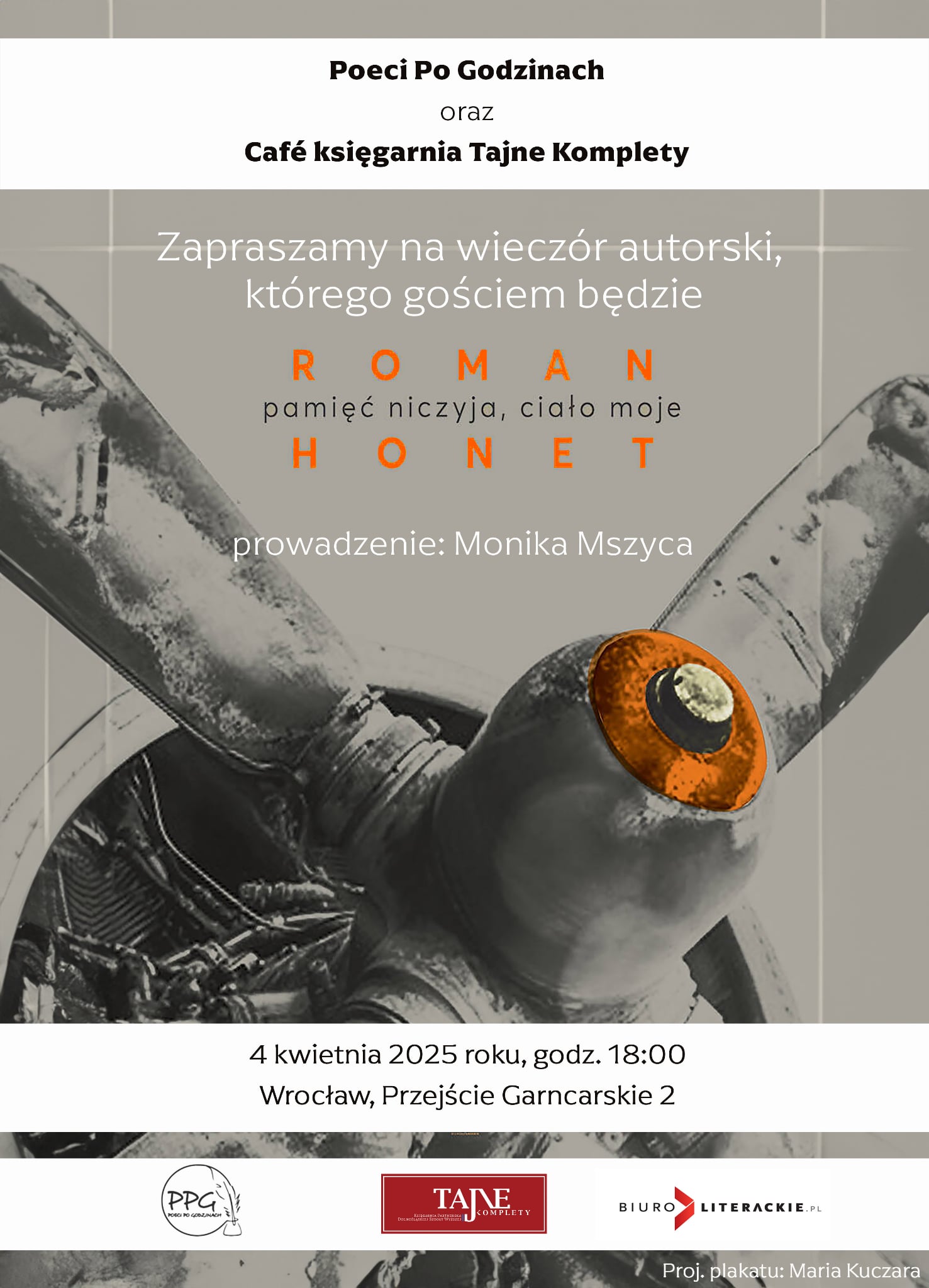 Wraz z Księgarnią Tajne Komplety, mamy przyjemność zaprosić Państwa, na wieczór autorski, którego gościem będzie Roman Honet.