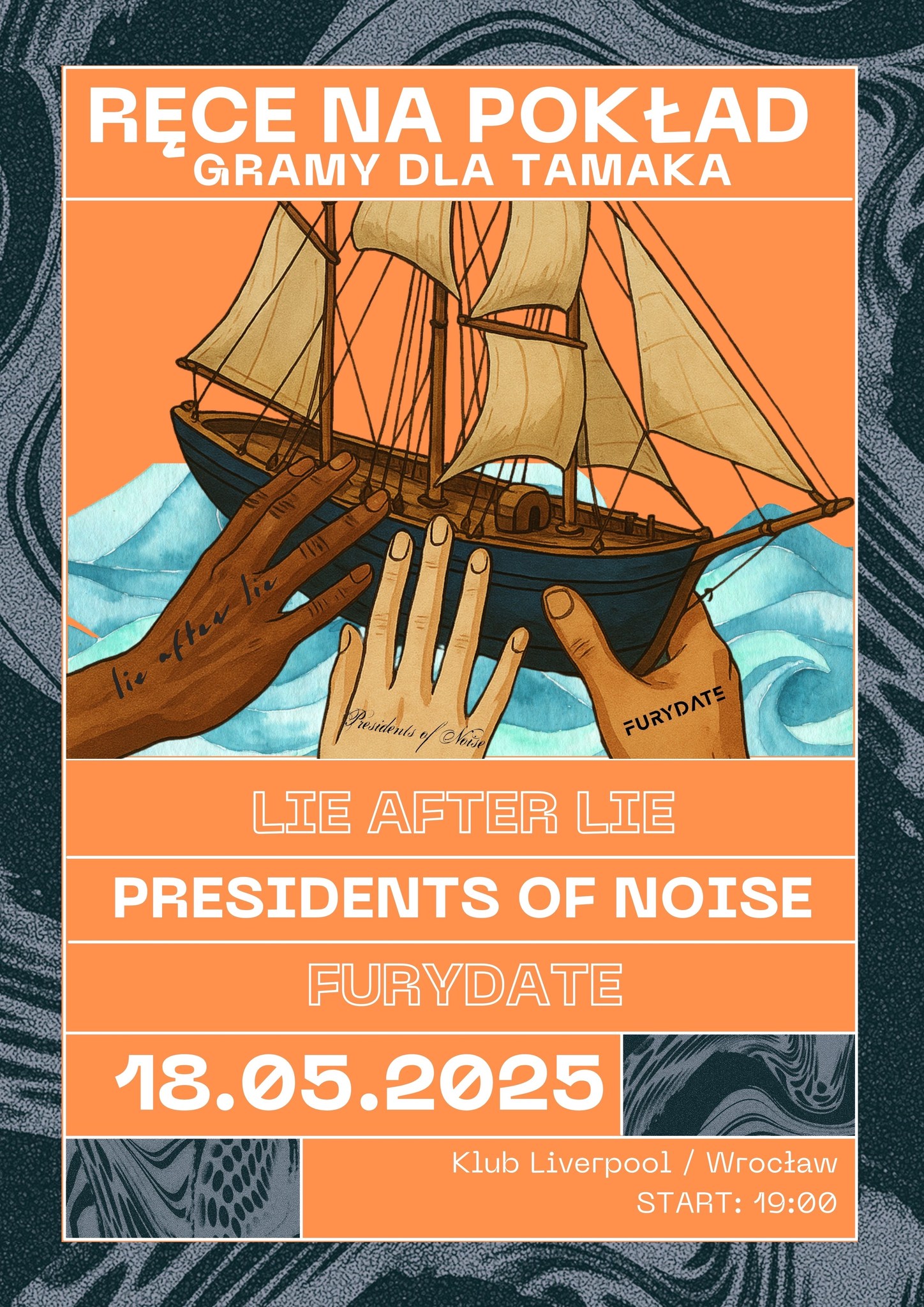Dlatego 18 maja spotykamy się w Klubie Liverpool, by pomóc Tamakowi w tej najtrudniejszej walce. Pokażmy mu, że jesteśmy z Nim – w ekipie siła, a przyjaciele nie odpuszczają. Na scenie zagrają jego znajomi i przyjaciele: Presidents of Noise, Lie after Lie i Furydate. Będzie głośno, będzie moc – i będzie sens.