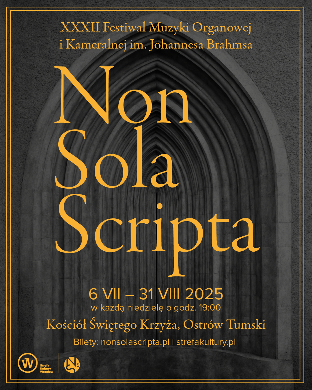 Już po raz trzydziesty drugi „Non Sola Scripta” rozgości się na Ostrowie Tumskim – najstarszej, zabytkowej części miasta. Właśnie tam, od 6 lipca do 31 sierpnia, rozbrzmiewać będzie muzyka organowa i kameralna w ramach cyklu dziewięciu niedzielnych koncertów. Tegoroczna edycja zapewni różnorodność zarówno w doborze programu artystycznego przez wykonawców, jak i w kwestii ich pochodzenia, formy prezentacji repertuaru oraz instrumentów, na których zagrają. Będzie to wyjątkowe spotkanie z bogatą tradycją europejskiej muzyki w wykonaniu młodych talentów i wirtuozów scen międzynarodowych.