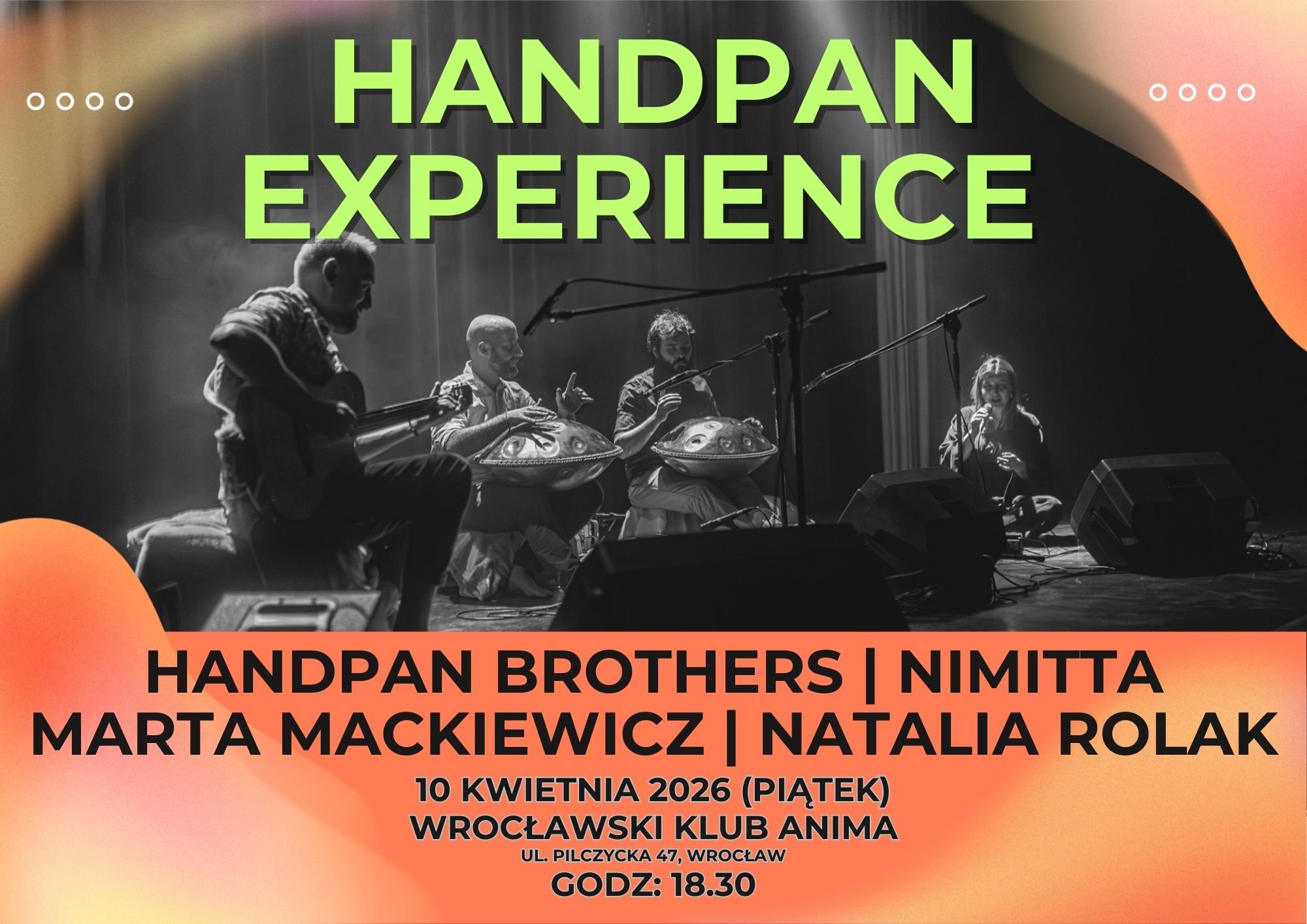 Podczas tego wyjątkowego wieczoru, oprócz kojących i relaksujących dźwięków handpanów, usłyszycie również znakomitego gitarzystę Krzysztofa Zadorożnego oraz wokalistki: Martę Mackiewicz i Natalię Rolak, która wystąpi także na skrzypcach.