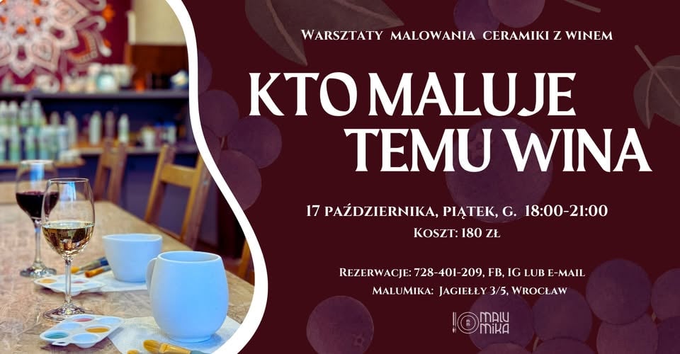 Zapraszamy na wyjątkowy wieczór pełen sztuki i dobrego wina! Już w piątek, 17 października, odbędą się warsztaty malowania ceramiki, podczas których połączymy artystyczną kreatywność z relaksem przy kieliszku wina.