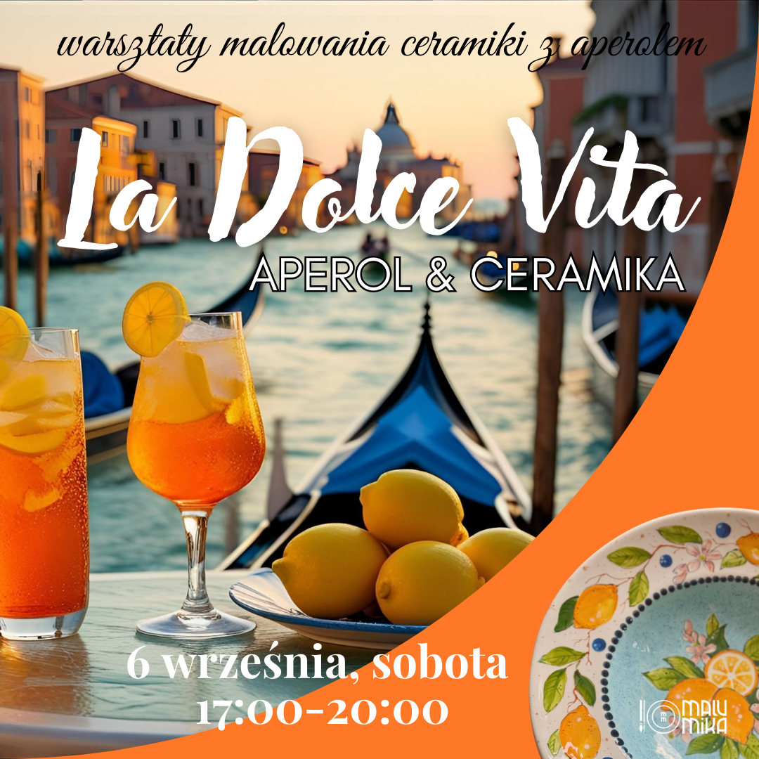 Plakat La Dolce Vita – warsztaty malowania ceramiki z aperolem MaluMika
