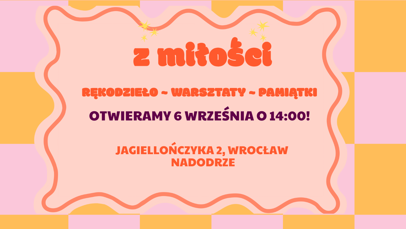 Zapowiada się nam niezły evencik! Jeśli macie czas w sobotę, to od 14:00 jesteśmy i witamy Was rękodziełem. Wpadnijcie zobaczyć nasze miejsce pełne koloru, bo króluje u nas róż, fiolet i pomarańcz. Przewidziane dodatkowe atrakcje niespodzianki. Wpiszcie do kalendarzy – Otwarcie z Miłości!