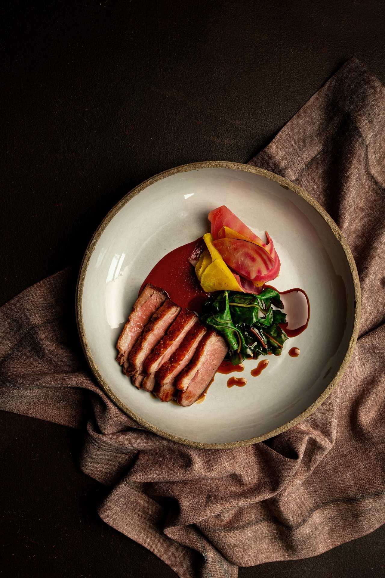 Każde danie to historia – o polskiej tradycji, o sezonowości i o sztuce wydobywania z prostych składników tego, co najlepsze. Na początek – krokiety z szarpanej gęsiny, delikatne, złociste, wypełnione powoli duszonym mięsem, aż do perfekcyjnej miękkości. Towarzyszy im aksamitny sos nawiązujący do staropolskiej czerniny, który podkreśla głęboki smak gęsiny, tworząc harmonijną całość pełną ciepła i domowego charakteru. Następnie – rosół z gęsi, podawany z kluskami z macy. Esencjonalny, klarowny, pachnący świeżymi ziołami i warzywami. Nasza wersja to mistrzowskie połączenie tradycji i nowoczesnej precyzji – klarowność bulionu i głębia smaku świadczą o wielogodzinnym gotowaniu w duchu slow food. Kolejną propozycją jest tatar z gęsi, czyli zaskakujące połączenie delikatności mięsa i świeżości dodatków. Szef Kuchni udowadnia, że gęsina – choć kojarzona z daniami pieczonymi – może zachwycać również w wersji surowej. Wyważone przyprawy przełamane świeżością pigwy sprawiają że każdy kęs to eleganckie doświadczenie smakowe. Kulminacją festiwalowego menu jest pierś z gęsi – soczysta, aromatyczna, z chrupiącą skórką i idealnie różowym wnętrzem. Podana z sezonowymi dodatkami, takimi jak mole z buraków i boćwina stanowi kwintesencję rzemieślniczego gotowania.