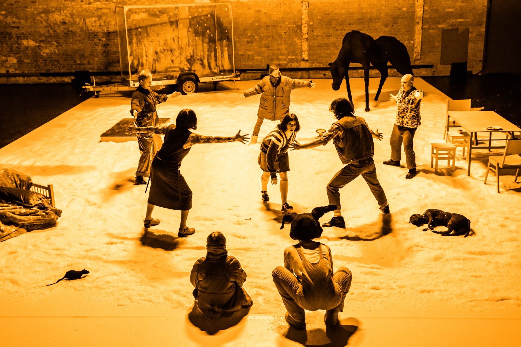 Przedstawienie na podstawie książki Marieke Lucasa Rijnevelda „Niepokój przychodzi o zmierzchu” jest wizualną opowieścią o doświadczeniu straty oraz o jej odkładaniu się w ciele i w wyobraźni; o próbie skonfrontowania się z tragedią, która więzi 10-letnią bohaterkę i jej bliskich w świecie pogrążonym w żałobie; o potrzebie odnalezienia sensu w śmierci. To także historia o dojrzewaniu i o końcu dzieciństwa. Świat, w którym panuje wieczna zima i przenikający chłód, pełny jest magicznego myślenia, zaklęć i modlitw. Widzimy go oczami małej dziewczynki wchodzącej w czas dorastania. Jest ona zarówno obserwatorką biegu wydarzeń, narratorką, jak i kreatorką fantazji - przechowuje wspomnienie tragedii, mierzy się z poczuciem winy i odpowiedzialności za rodziców, zmaga się z ukłuciami pustki.