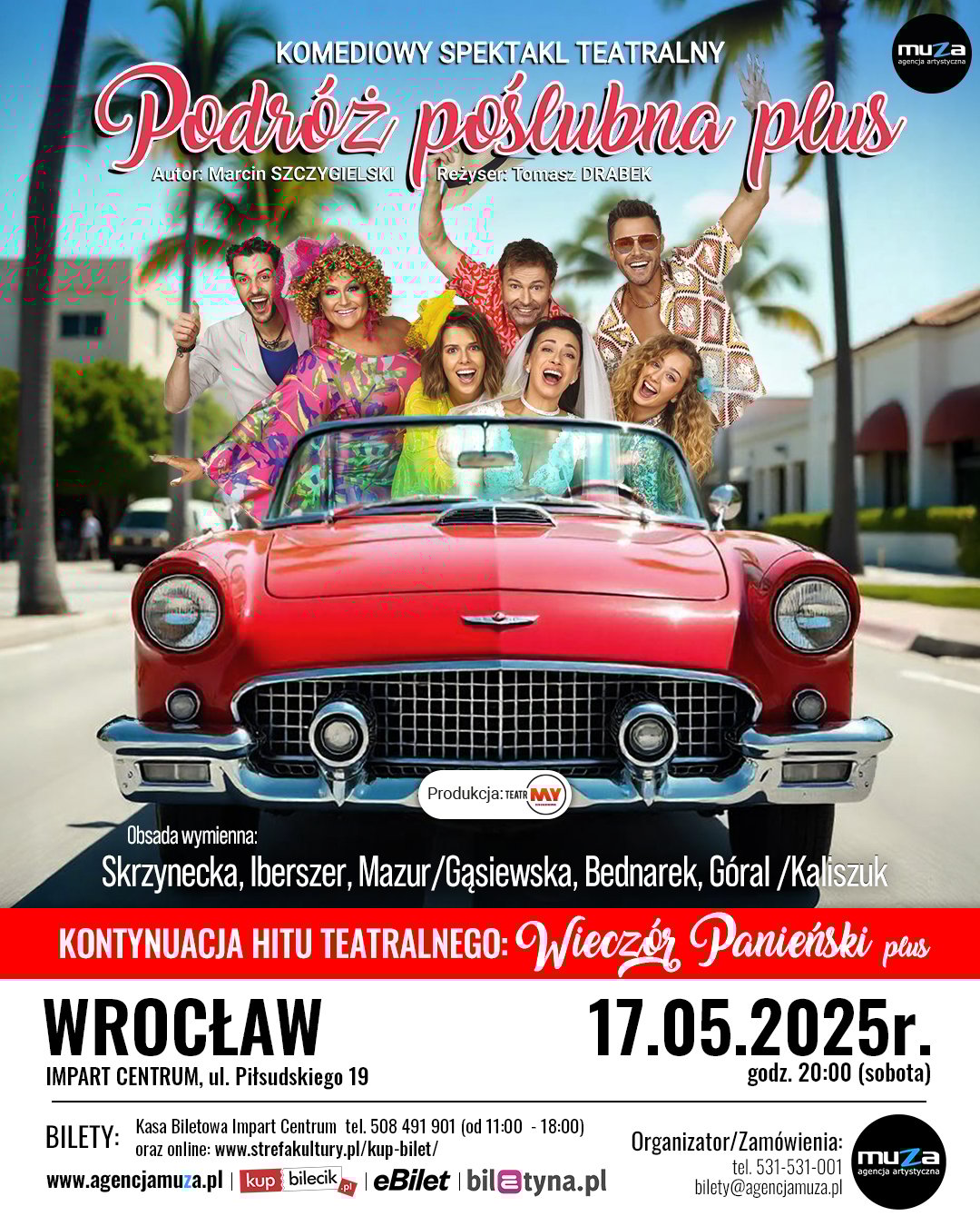 „Podróż poślubna plus” na pewno przypadnie Wam do gustu, podobnie jak „Wieczór panieński plus”! Nie przegap okazji, by spędzić wieczór w dobrym towarzystwie i wesołej atmosferze. Spektakl, który z pewnością zostawi w waszych sercach dużo uśmiechu! A „plus” w tytule też ma znaczenie. Bo tu właśnie zaczyna się cała zabawa!