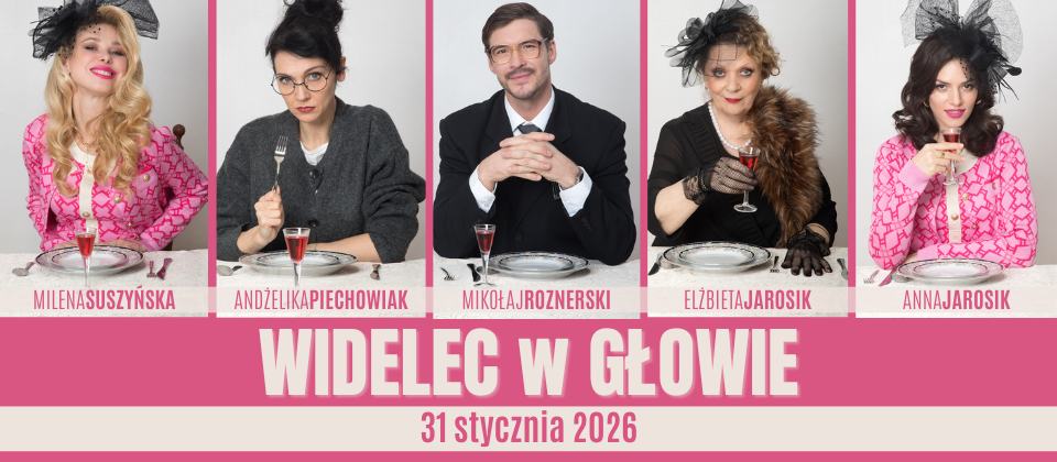 „Widelec w głowie” będąca ukoronowaniem 50-lecia pracy artystycznej Elżbiety Jarosik. Jej mistrzowsko odegrana Teresa – gospodyni domowa, która nie cofnie się przed niczym, by osiągnąć swój cel, będzie bawić do łez, chwilami przerażać, zaskakiwać i poruszać. Wraz z dwiema córkami: Pauliną (Andżelika Piechowiak) – miejscową bibliotekarką, idealistką z kompleksami i sfrustrowaną starą panną w jednym oraz Ewą (Anna Jarosik/ Milena Suszyńska) – wielkomiejską femme fatale, zarozumiałą i arogancką, będącą niemalże lustrzanym odbiciem mamusi, stworzą trio, którego długo nie zapomnicie.