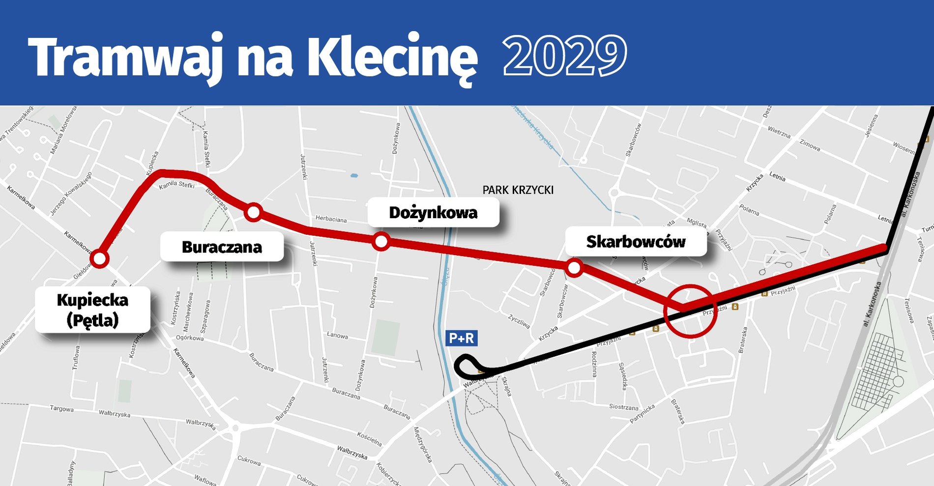 Przedstawiono wyniki konsultacji społecznych, które wyłoniły wariant trasy tramwajowej. Nowa linia tramwajowa zaczynać się będzie na ulicy Przyjaźni między obecnymi przystankami "Braterska" a "Sąsiedzka". Wytyczonym lata temu korytarzem jechać będzie nowym mostem nad Ślęzą, przejedzie przez Klecinę, aby skończyć trasę na pętli na Oporowie przy ul. Kupieckiej na wysokości skrzyżowania tej ulicy z Karmelkową i Giełdową.