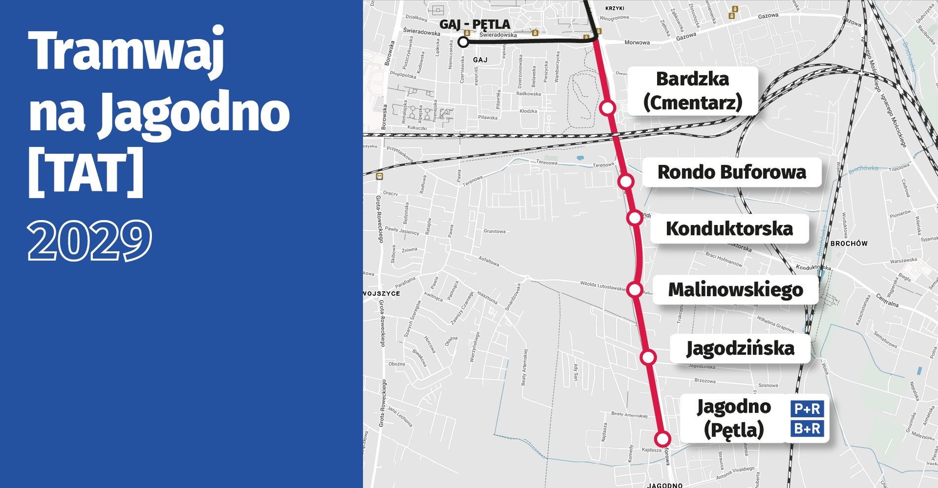 Budowa trasy autobusowej na Jagodno została zakończona. Z nowej pętli przy ul. Kajdasza, która nosi nazwę Jagodno P+R swoje kursy rozpoczęły 5.05.2025 r. autobusy linii N, 110, 145, 148, 310 i nocny 255.