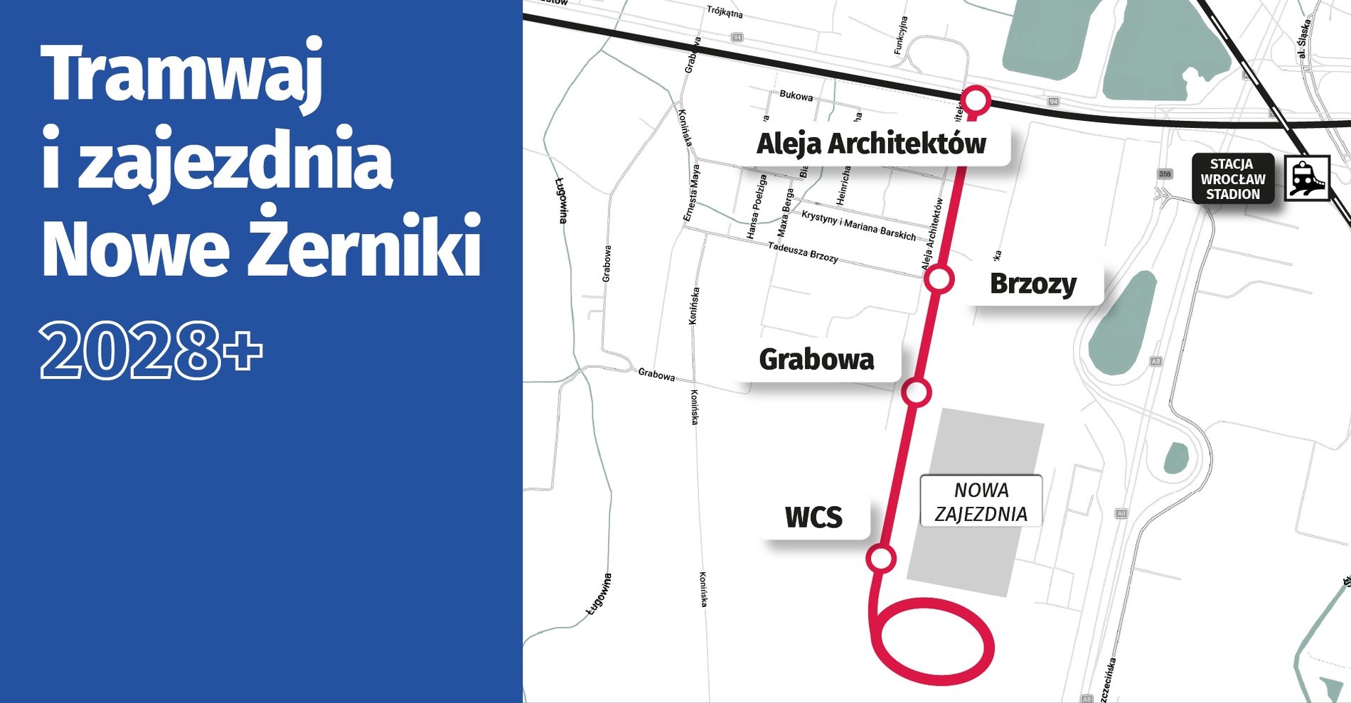2028 - otwarcie odcinka do al. Architektów wraz z zajezdnią