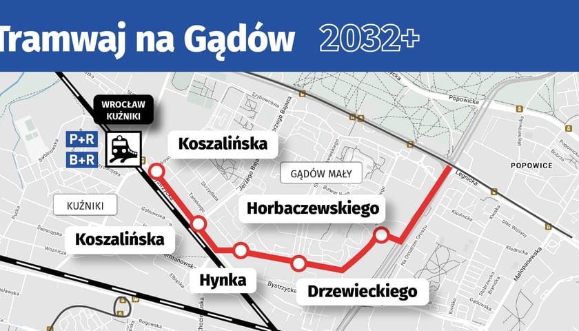 Tramwaj zapewni dobre połączenie z centrum mieszkańcom Gądowa Małego i Kuźnik. Tory mają biec od ul. Na Ostatnim Groszu do stacji kolejowej Kuźniki. Projektowanie jest wstrzymane do czasu rozstrzygnięcia inwestycji kolejowych: budowy bezkolizyjnego skrzyżowań torów z ulicami Koszalińską i Balonową.